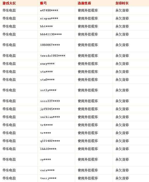 近期封停账号名单: